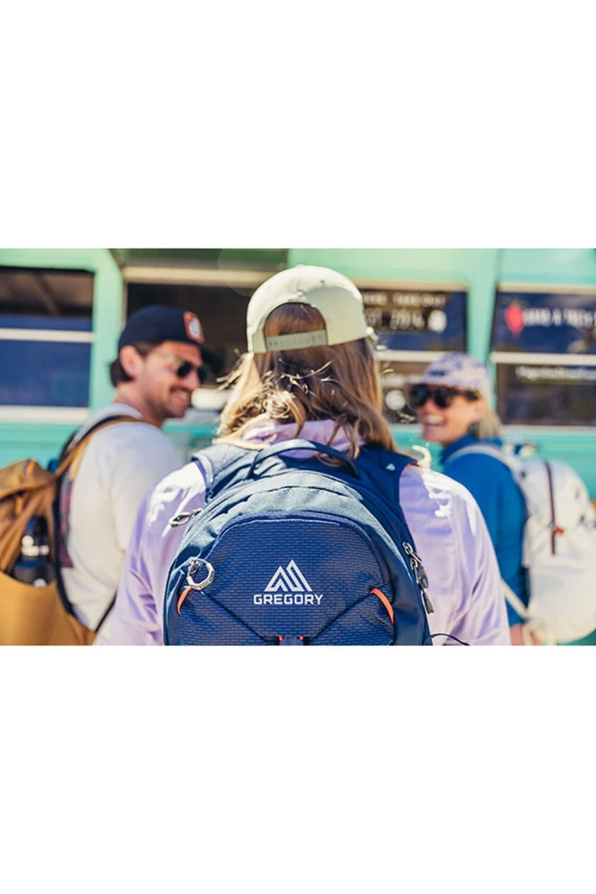 Plecak Gregory Nano 20 L – Optic Black to lekki i kompaktowy plecak (540 g, 20 l), zaprojektowany zarówno do górskich wędrówek, jak i codziennego użytku. Plecak Nano 20 jest wyposażony w oddychający panel tylny i wyściełane pasy ramienne zapewniające całodzienny komfort. Kieszenie szybkiego dostępu i oddzielny rękaw na system nawadniający, w którym można także schować tablet lub laptopa, nadają plecakowi uniwersalny charakter.  Wyposażony w oddzielną kieszeń na bukłak lub tablet, przednią siatkową kieszeń z klamrą oraz boczne kieszenie na butelki – wszystko w wytrzymałych, w 40 % wykonanych z recyklingu materiałach. Dzięki wyściełanym, oddychającym szelkom i panelowi tylnemu oraz odpinanemu pasowi biodrowemu, zapewnia komfort noszenia przez cały dzień.