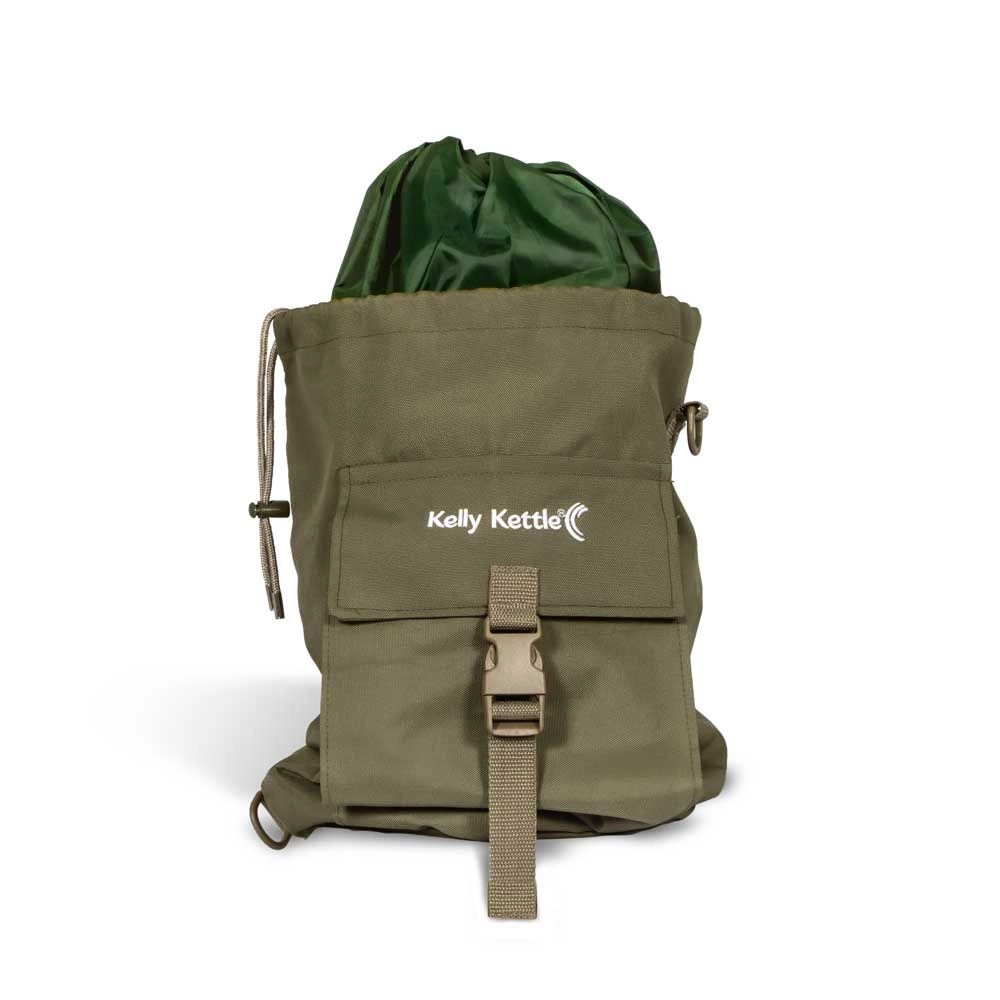 Wytrzymała zielona torba z paskiem na ramię do przenoszenia całego zestawu Kelly Kettle. Ta torba jest wystarczająco duża, aby z łatwością pomieścić nasz największy model „Base Camp” i wszystkie akcesoria, które składają się na zestaw. Cechy torby obejmują: