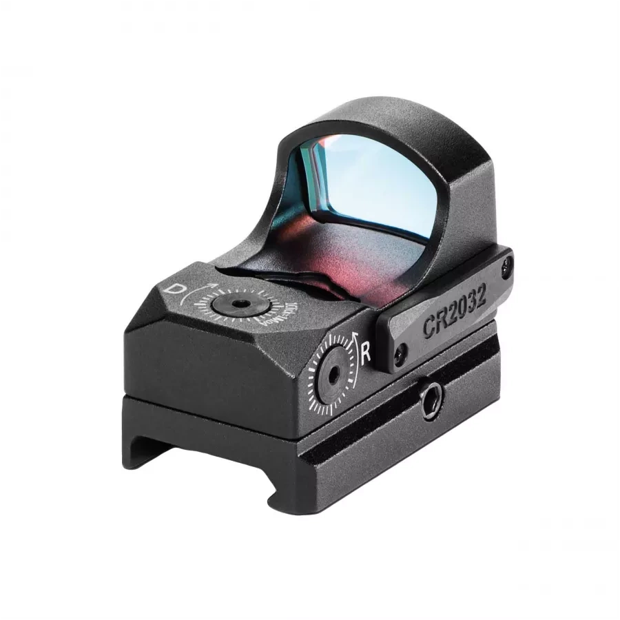 Wyposażenie: niski montaż na szynę Weaver, gumowa osłona, klucze imbusowe, wkrętak płaski, ściereczka do czyszczenia optyki, bateria CR2032