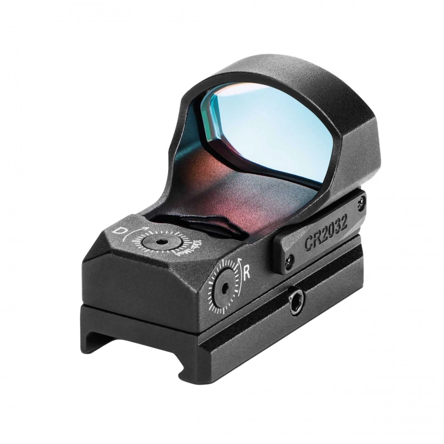 Hawke Micro Reflex 3 MOA Wide View to lekki i kompaktowy celownik kolimatorowy o otwartej konstrukcji, zaprojektowany z myślą o montażu na pistolecie, strzelbie oraz broni myśliwskiej. Korpus wykonano z lekkiego stopu aluminium, co zapewnia odporność na wstrząsy oraz niską wagę — zaledwie 57 g.