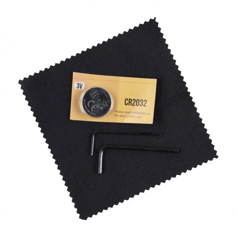 W zestawie: bateria CR2032, klucz imbusowy, ściereczka do czyszczenia optyki