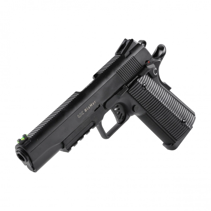Umarex BlaMer to pistolet wiatrówka na śrut kulisty 4,5 mm BB, inspirowany legendarnym pistoletem wojskowym Colt 1911, używanym na wielu frontach przez żołnierzy.