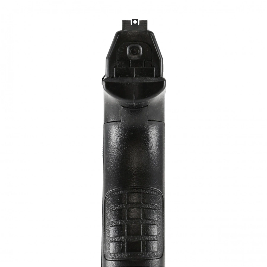 Umarex XBG posiada stałą muszkę i szczerbinkę z białymi punktami ułatwiającymi celowanie.