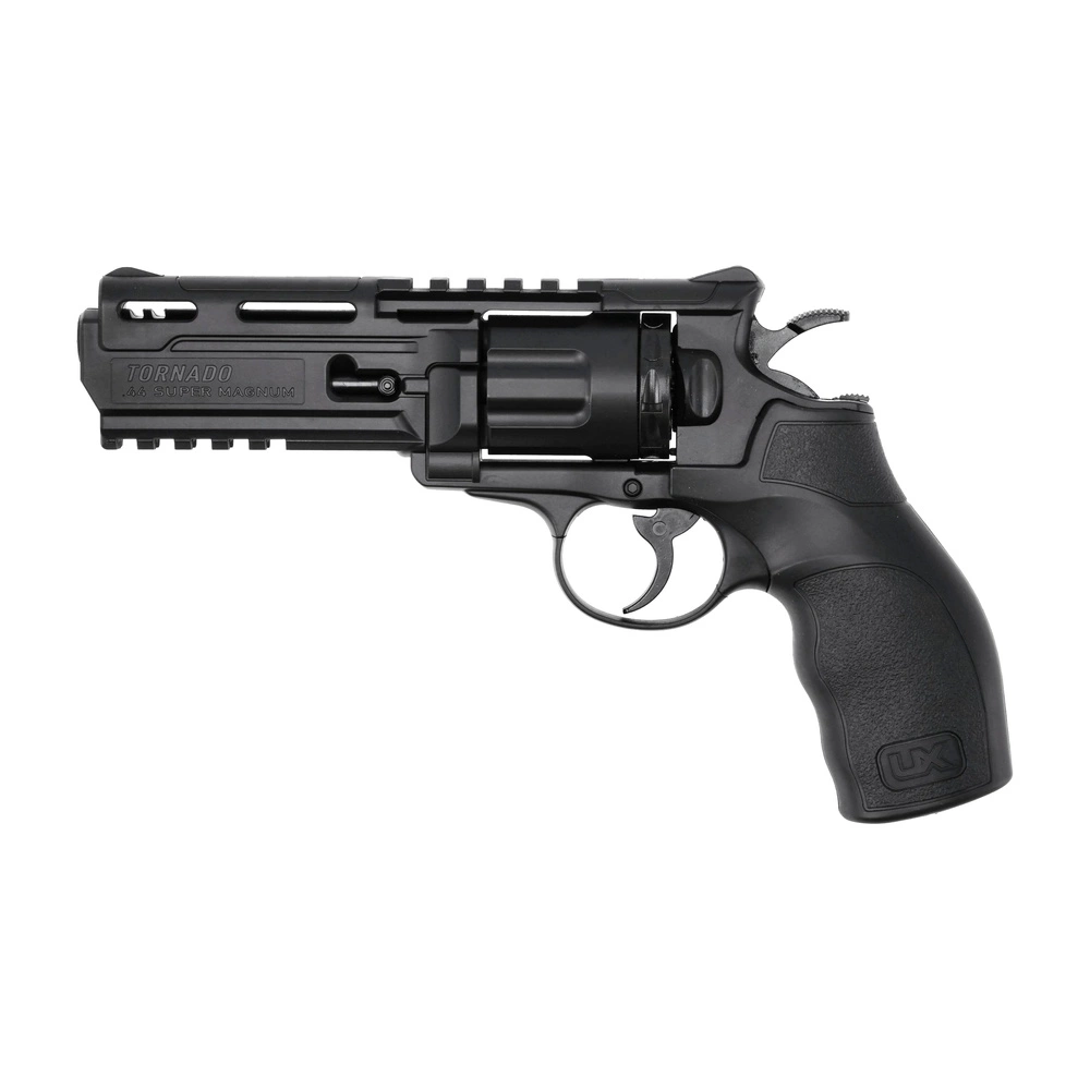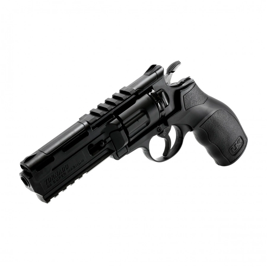Umarex TORNADO to nowoczesny rewolwer wiatrówkowy w kalibrze 4,5 mm BB, zaprojektowany w futurystycznym stylu. Model łączy w sobie solidną konstrukcję z polimeru, ergonomię oraz funkcjonalność, zapewniając realistyczne odczucia strzelania rekreacyjnego.
