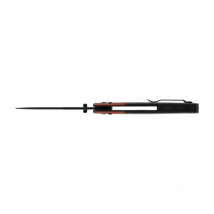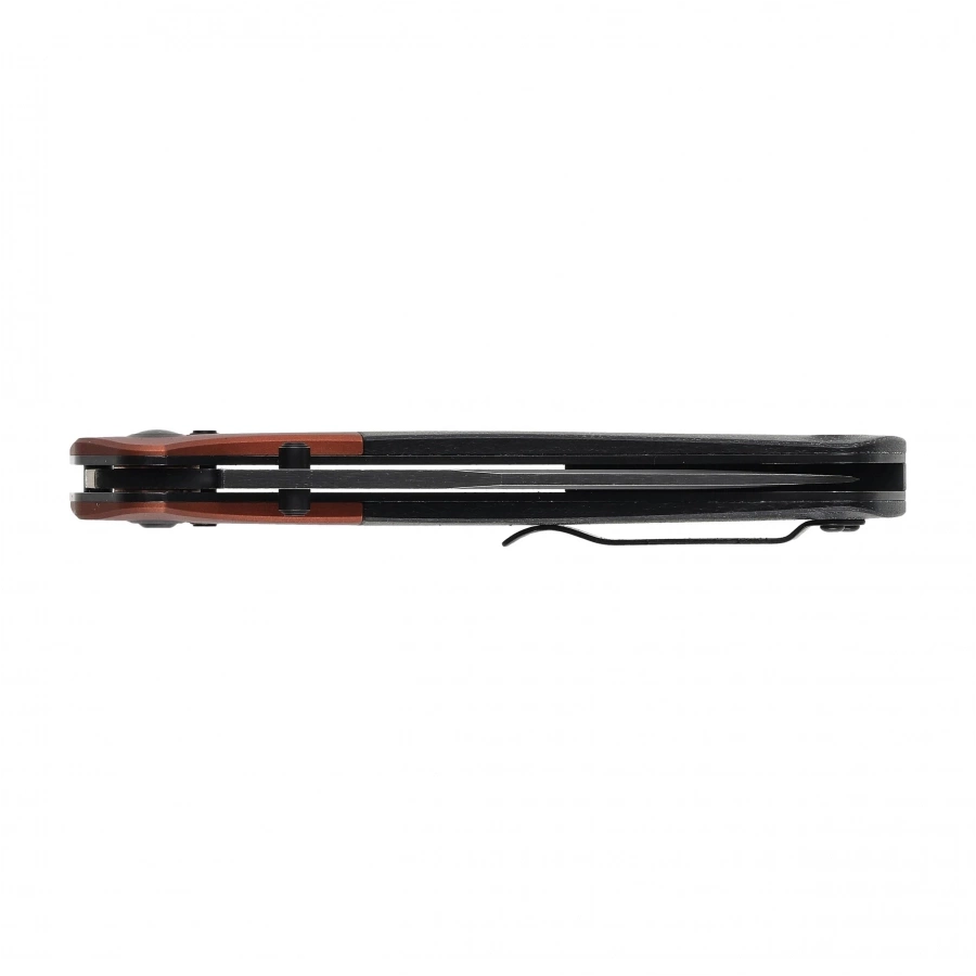 Rękojeść wykonana z anodowanego aluminium 6061-T6 z wstawkami z Micarty oferuje pewny chwyt, odporność na wilgoć oraz wyjątkową estetykę w kolorystyce czarno-miedzianej.