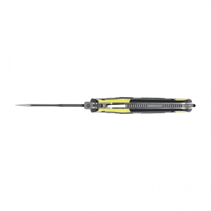 Za bezpieczeństwo odpowiada sprawdzona blokada Liner-Lock, ceniona za trwałość i prostotę obsługi. Rękojeść wykonano z gumowanych okładzin wzmocnionych stalowymi wkładkami, co gwarantuje pewny chwyt w każdych warunkach. Żółte wstawki zwiększają widoczność noża w słabym świetle.