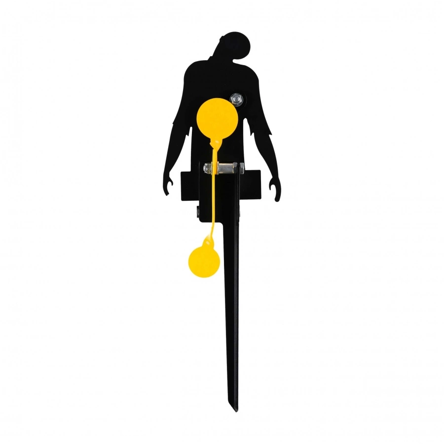 RGun Silhouette w formie humanoidalnego zombie to wytrzymały cel reaktywny, który doskonale sprawdzi się w treningu strzeleckim z wiatrówek. Jego solidna konstrukcja z grubej stalowej blachy zapewnia trwałość, a stabilna nóżka pozwala pewnie osadzić cel w ziemi, gwarantując komfortowy trening.