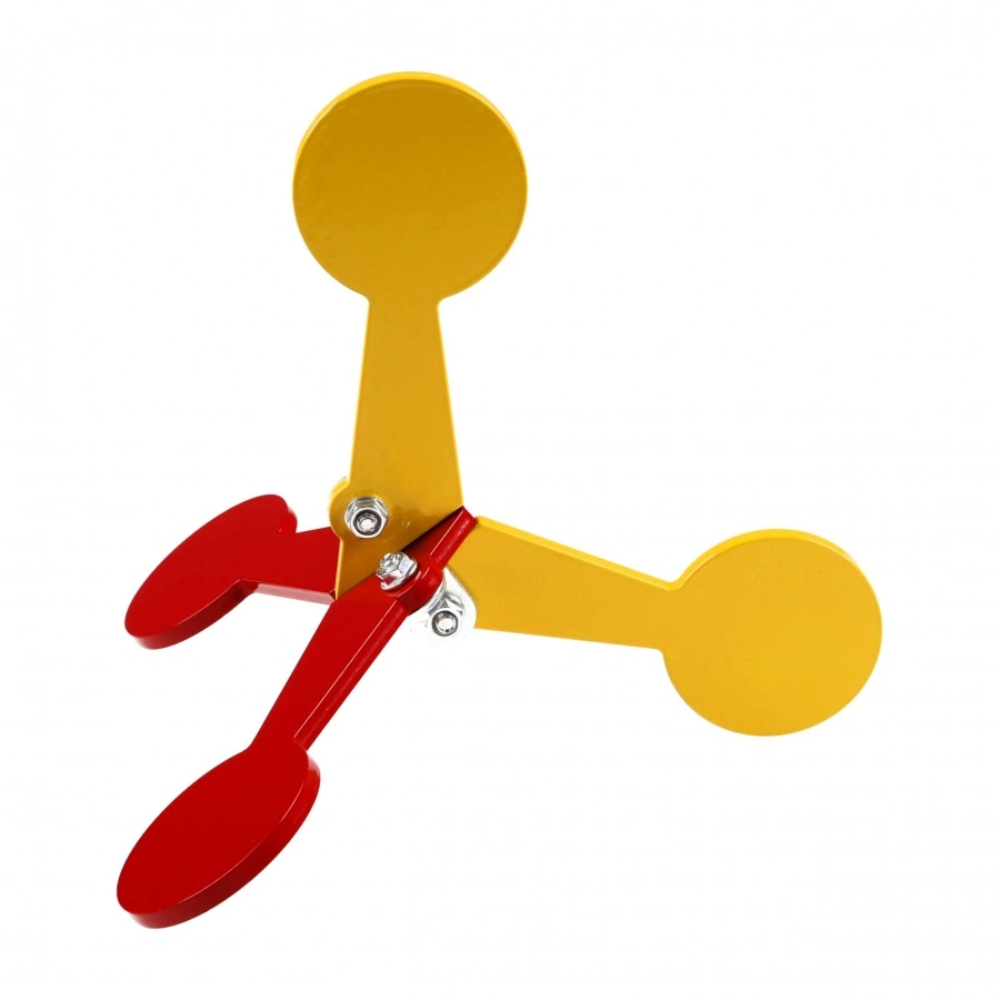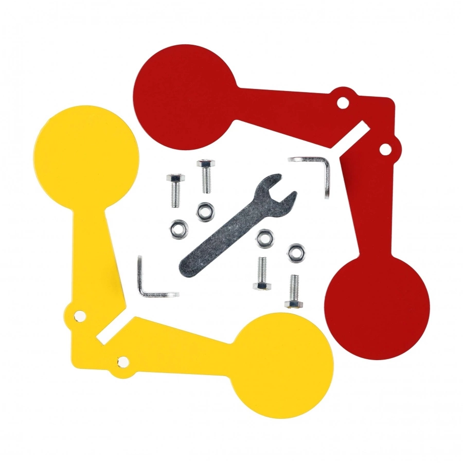 Cel wykonano z solidnej stali, dzięki czemu wytrzymuje trafienia z broni .22LR. Każde uderzenie powoduje zmianę położenia i koloru tarczek, a jedno z dwukolorowych ramion pozostaje zawsze w pozycji górnej. Taka funkcjonalność sprawia, że strzelec musi każdorazowo korygować punkt celowania, co znacząco zwiększa efektywność treningu.