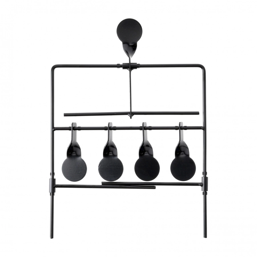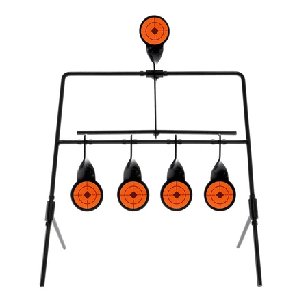 Każdy z czterech celów to wahadłowy krążek, który obraca się po trafieniu, umożliwiając natychmiastową weryfikację strzału. Mechanizm resetujący pozwala przywrócić cele do pozycji wyjściowej zdalnie – wystarczy trafić w dodatkowy górny krążek. Dzięki temu nie trzeba podchodzić do celów po każdej serii strzałów.