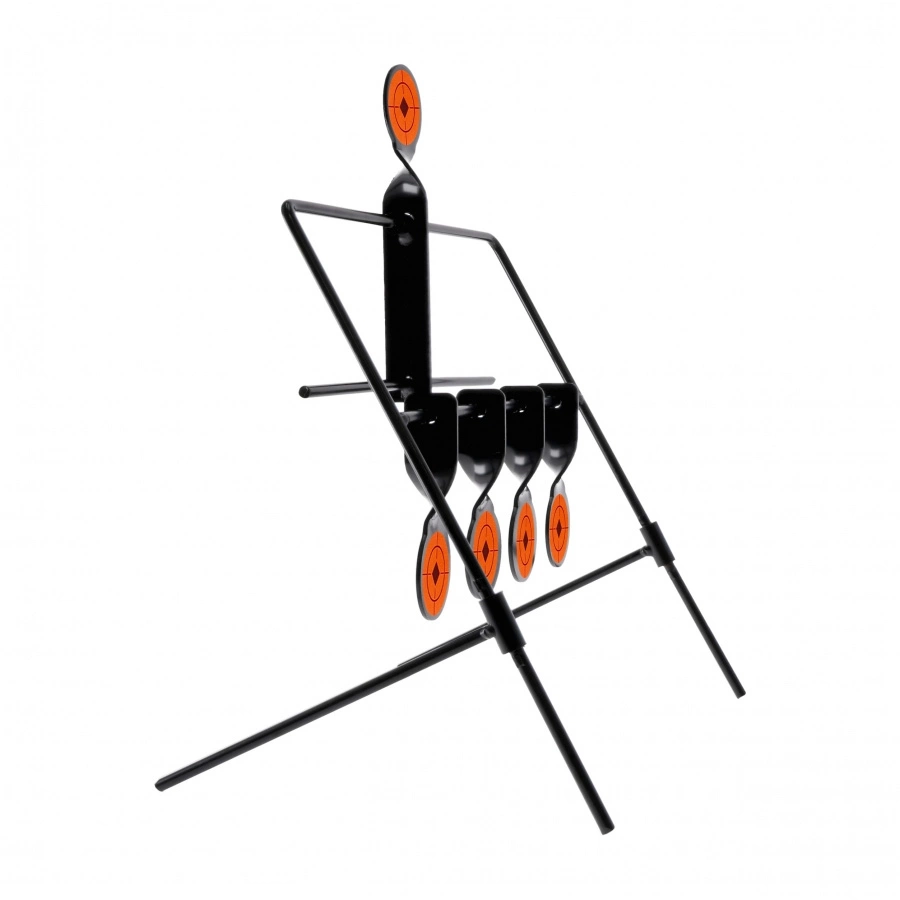 Składana rama celów pozwala na szybkie ustawienie strzelnicy w dowolnym miejscu, a po złożeniu spinner bez problemu mieści się w plecaku, co czyni go idealnym rozwiązaniem do plenerowego strzelania. Dwa solidne wsporniki gwarantują stabilność i trwałość całej konstrukcji, a lekka rama ułatwia transport.