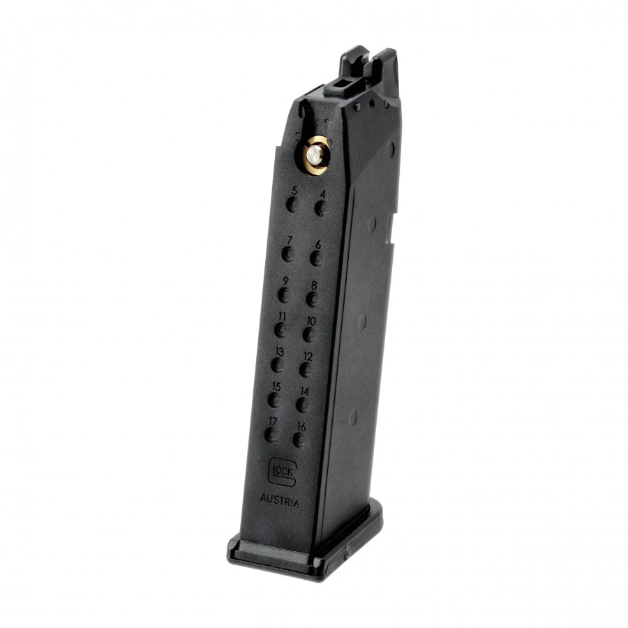 Zapasowy magazynek przeznaczony do wszystkich replik pistoletów Glock 17 czwartej generacji. Mieści 23 kulki BB 6 mm i jest w pełni kompatybilny z replikami Glock Gen.4. Wyposażono go w krawędź donośnika, która znacząco ułatwia ładowanie kulek. Magazynek pełni również funkcję zbiornika gazu napędowego, posiadając odpowiedni zawór. Konstrukcja łączy wytrzymały polimer oraz metalową sprężynę, co zapewnia długą żywotność i odporność podczas użytkowania.
