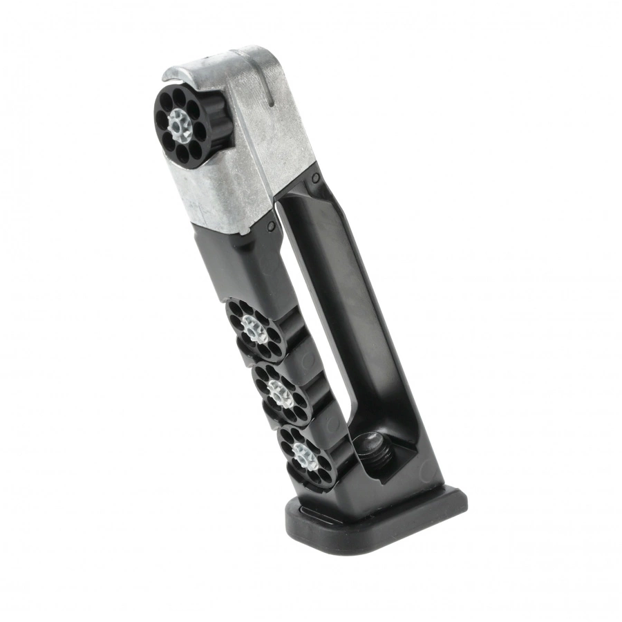 W zestawie znajdują się 4 wkładki wianuszkowe (1 załadowana + 3 zapasowe), każda mieszcząca 8 śrutów BB, co daje łączną pojemność 32 sztuk amunicji.