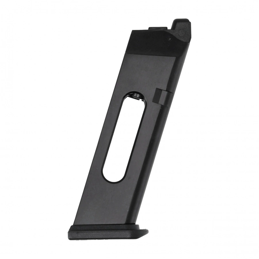 Magazynek o pojemności 18 kulek 6 mm, przeznaczony do repliki Glock 17 Gen5 MOS zasilanej kapsułami CO₂. Konstrukcja wykonana jest z metalu, a stopkę magazynka z polimeru.