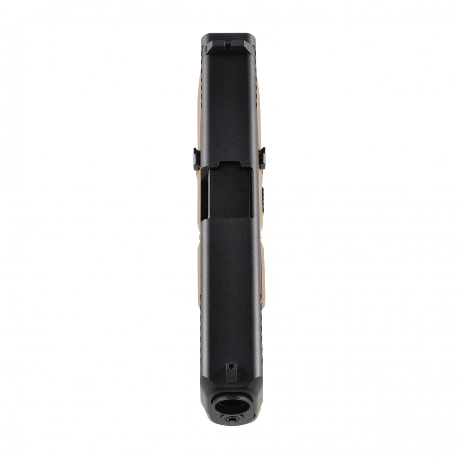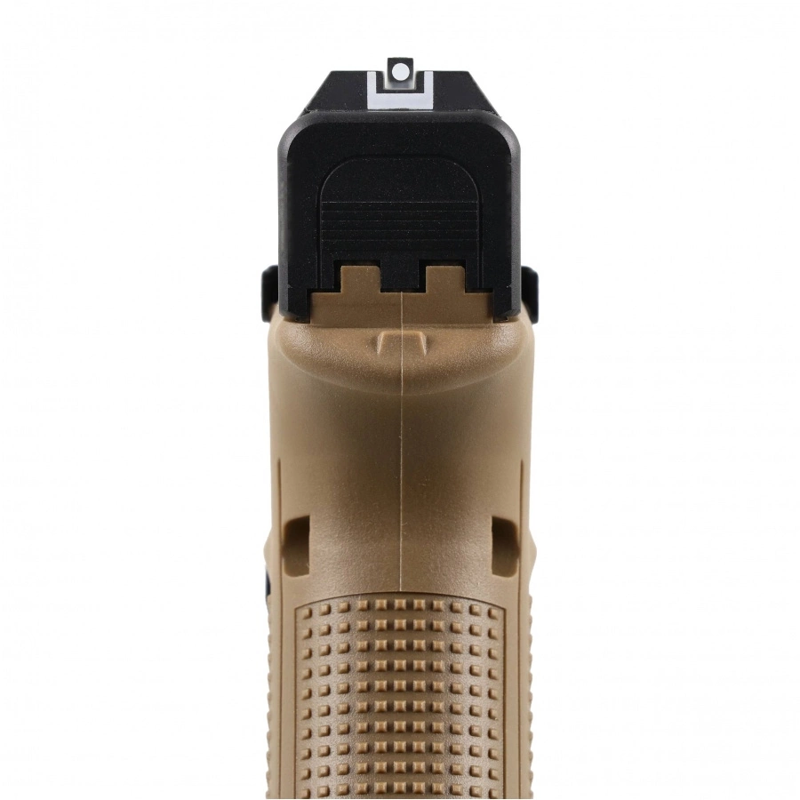 Szyna akcesoryjna pozwala montować laserowy wskaźnik celu lub latarkę taktyczną. Nakładki na chwyt z Glock 17 (brak w zestawie) umożliwiają personalizację ergonomii.