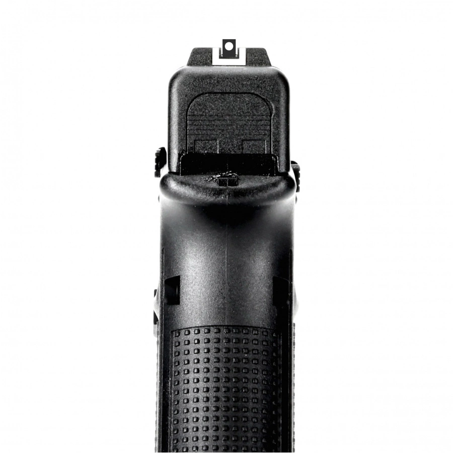 Stałe przyrządy celownicze (muszka z białą kropką oraz szczerbinka z kontrastową ramką) ułatwiają szybkie zgrywanie celu, także w gorszych warunkach oświetleniowych.