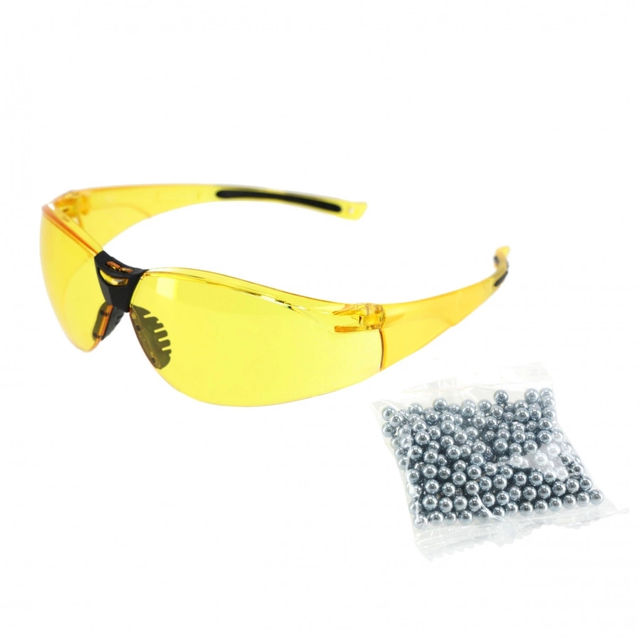 W komplecie z wiatrówką znajdują się okulary ochronne, chroniące przed rykoszetami, oraz opakowanie 250 stalowych kulek BB's, dzięki czemu można rozpocząć trening od razu po zakupie.