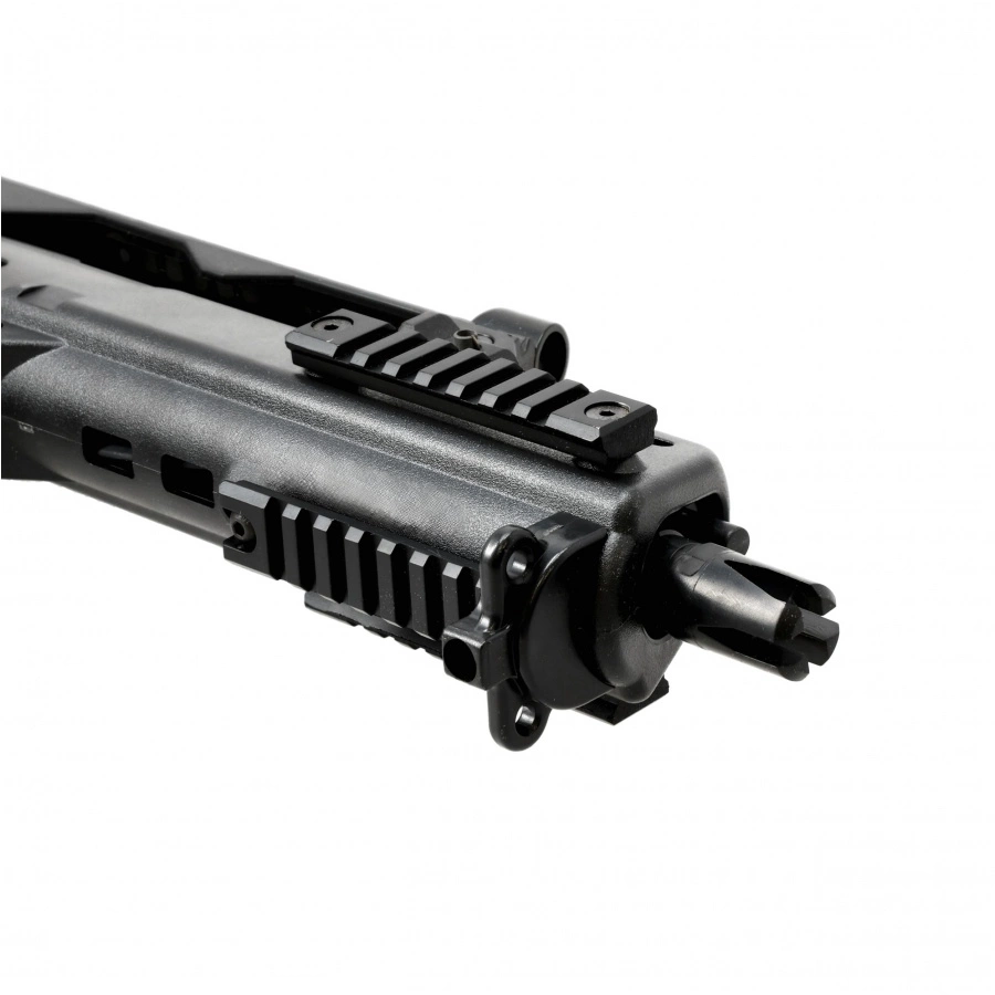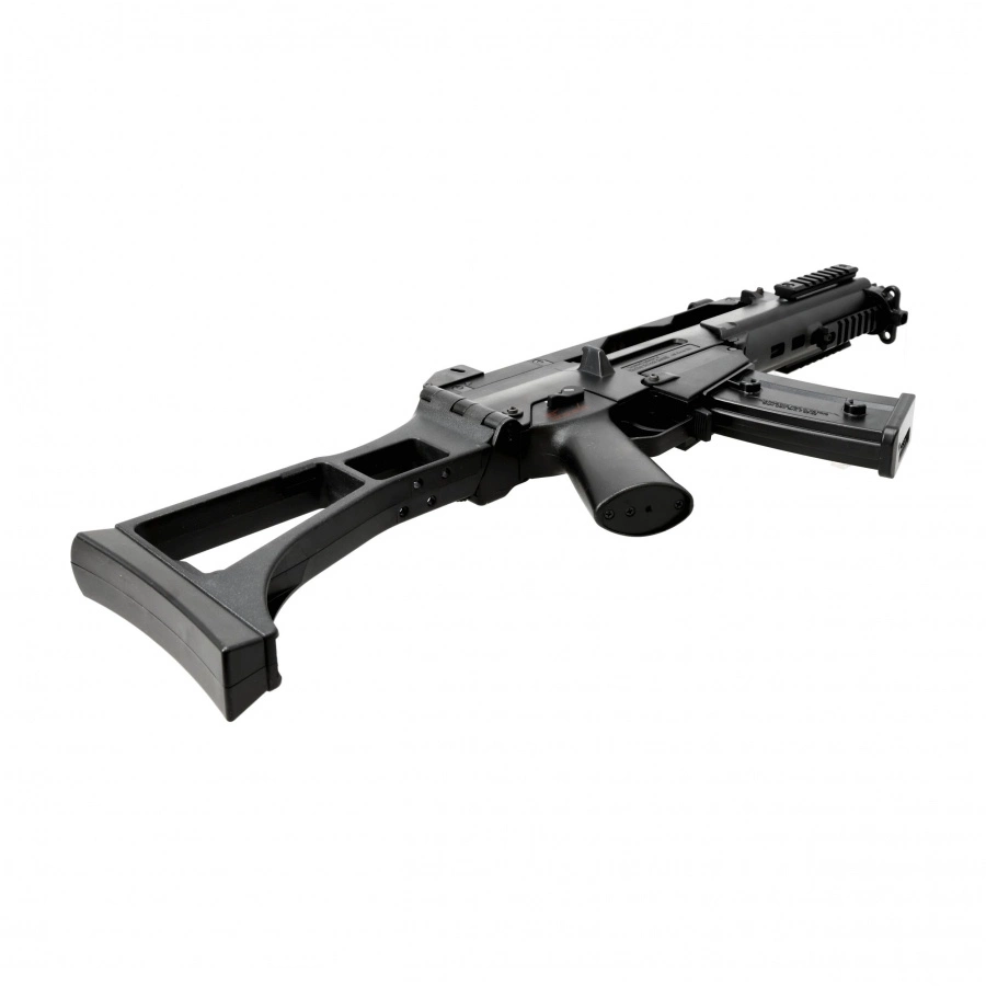 Replikę wykonano z wytrzymałego polimeru o matowej, antypoślizgowej fakturze oraz z metalu (lufa i podzespoły wewnętrzne). Zwarta konstrukcja i składana na bok kolba zapewniają wysoką mobilność oraz komfort użytkowania w ciasnych przestrzeniach.