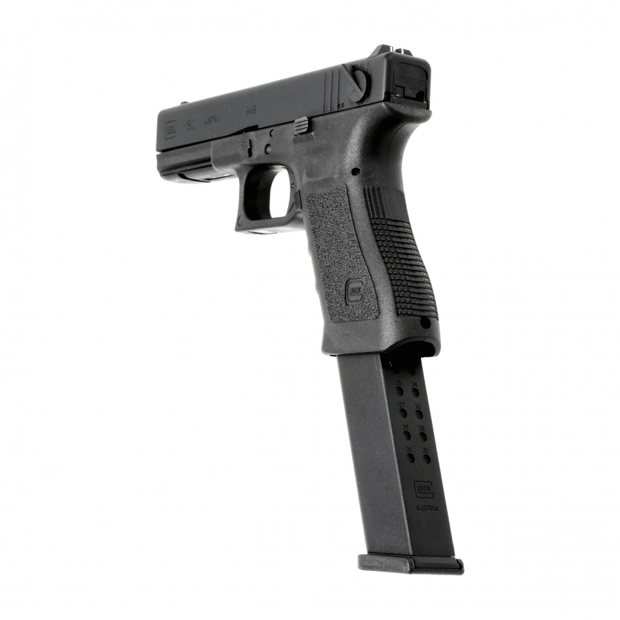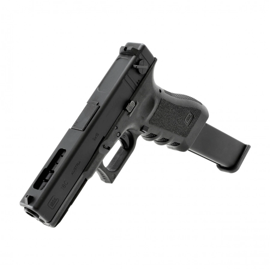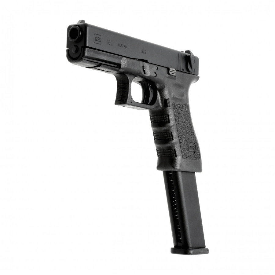Glock 18C 6 mm to licencjonowana replika austriackiego pistoletu, wyróżniającego się możliwością prowadzenia ognia ciągłego. Model odwzorowuje oryginał zarówno pod względem wyglądu, jak i działania mechanizmów. Metalowy zamek z systemem Blow-Back, polimerowy szkielet, zasilanie Green Gas i przedłużony magazynek sprawiają, że jest to propozycja idealna dla miłośników dynamicznej walki.