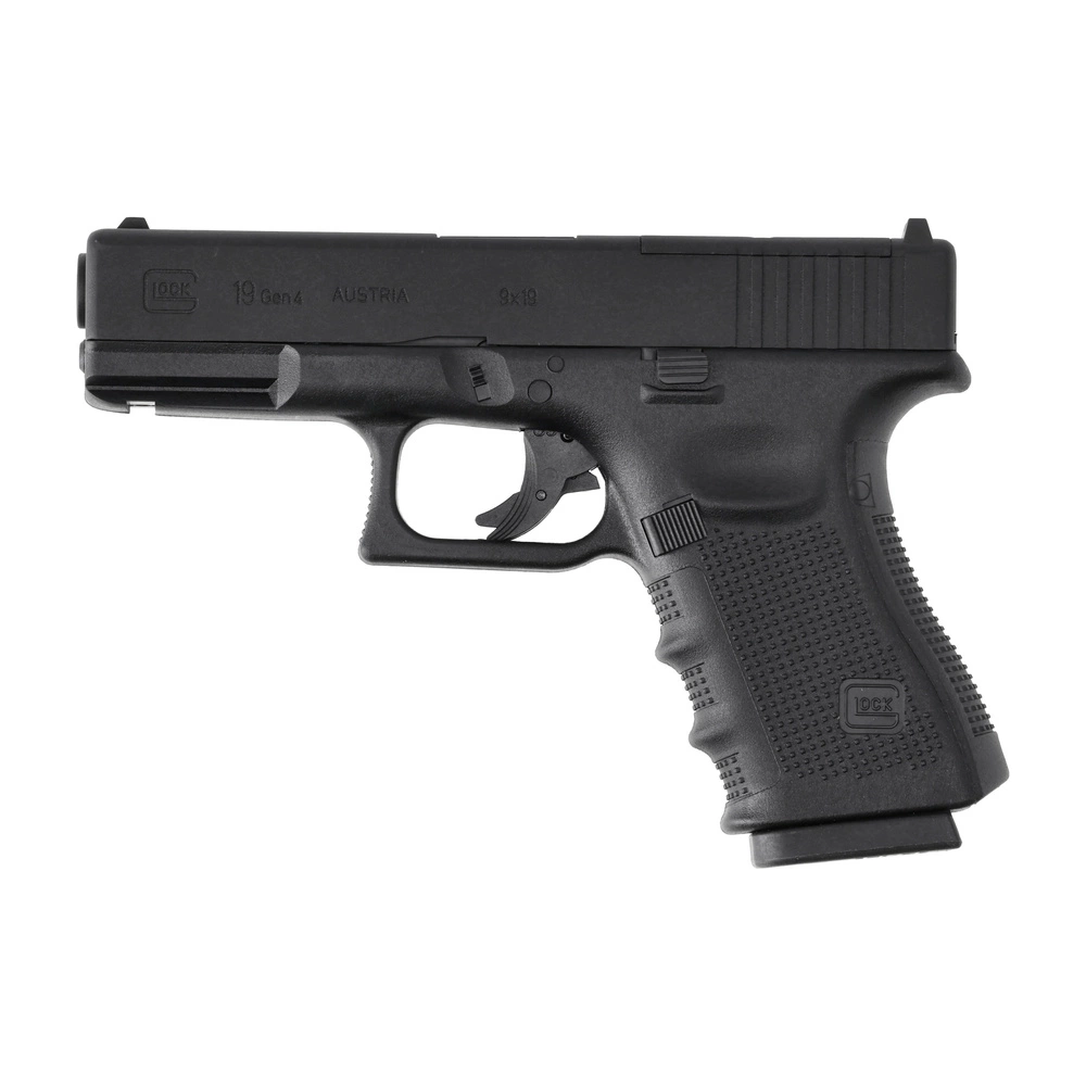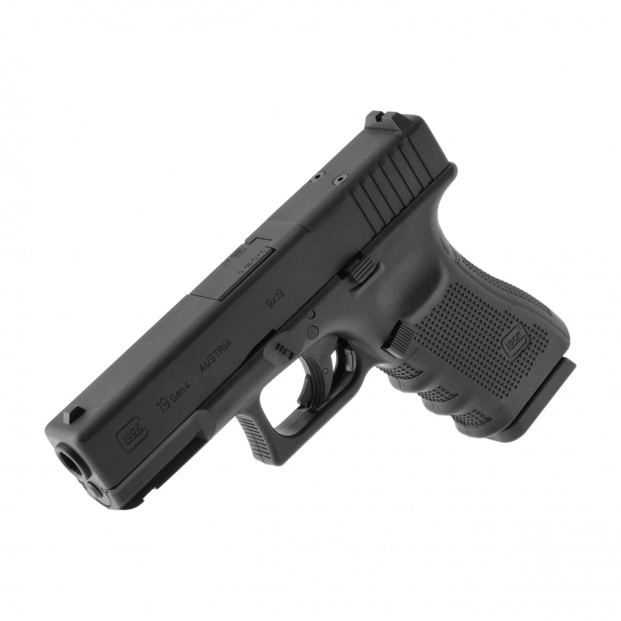 Glock 19 Gen.4 MOS posiada klasyczne przyrządy: stałą muszkę oraz szczerbinkę z białymi punktami. Pod lufą znajduje się szyna Picatinny 22 mm, umożliwiająca montaż latarki lub wskaźnika laserowego.