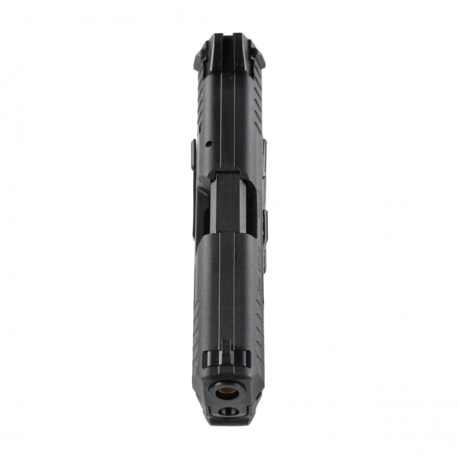 Żebrowanie w przedniej i tylnej części zamka ułatwia przeładowanie, a powiększony kabłąk pozwala na komfortowe strzelanie również w rękawicach ochronnych. Stałe przyrządy celownicze zapewniają szybkie i intuicyjne celowanie. Na zamku i szkielecie znajdują się licencjonowane oznaczenia Walther.