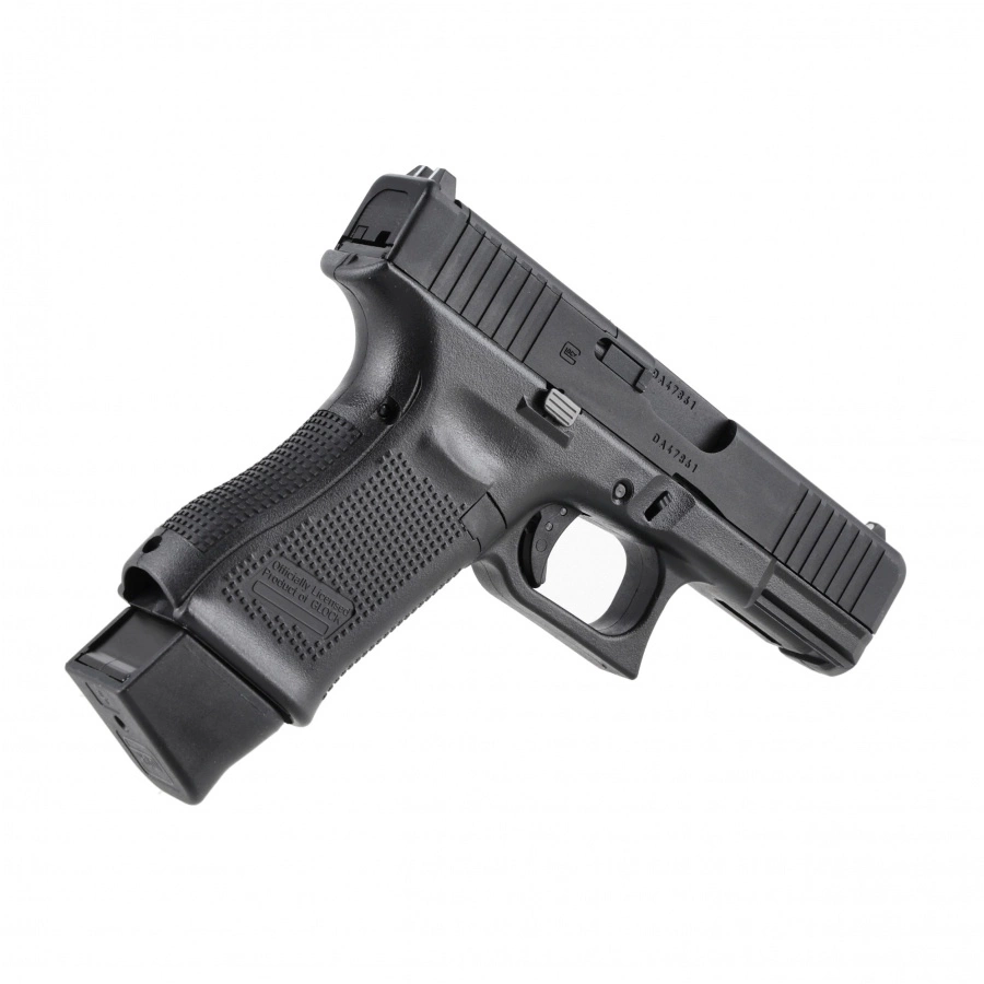 Glock 19 Gen.5 MOS to licencjonowana replika ASG kalibru 6 mm, zbudowana na polimerowym szkielecie i wyposażona w aluminiowy zamek z oryginalnymi oznaczeniami producenta. Model oferuje mocny i realistyczny system Blow-Back, dzięki czemu wrażenia strzeleckie są bardzo zbliżone do obsługi broni palnej. Kompaktowe wymiary sprawiają, że replika doskonale sprawdza się na krótkich i średnich dystansach.