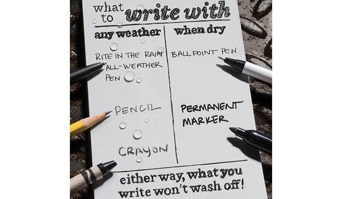Dzięki impregnowanym kartkom umożliwia zapisywanie i odczytywanie treści nawet podczas deszczu, śnieżycy czy kontaktu z błotem lub wodą.