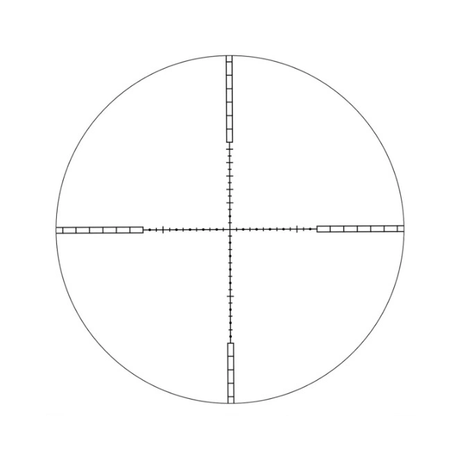 Na szklanym obiektywie wytrawiono siatkę celowniczą VMD-2 na drugim planie z krzyżem typu Mildot. Pozwala on na łatwe wprowadzenie poprawek w zakresie 60 MOA w pionie i poziomie o 1/4 MOA na pojedynczy klik. Wieżyczki z bębnami regulacji krzyża celowniczego schowane są pod odkręcanymi pokrętłami, co osłania je przed niepotrzebnymi zabrudzeniem lub uszkodzeniem.