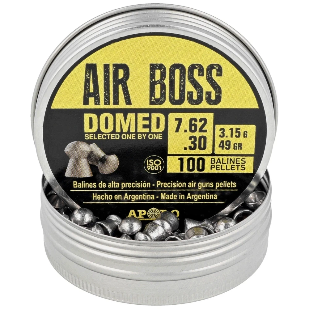 Air Boss Domed .30 ciężki, precyzyjny śrut typu Round (zaokrąglony) o wyśmienitej aerodynamice, retencji i dużej sile uderzenia w kalibrze 7.62 mm. Opracowany przy współpracy z czołowymi producentami mocnych wiatrówek. Współczynnik balistyczny Ballistic Coefficient (BC): 0.043. Indywidualnie selekcjonowana, sztuka po sztuce (Selected One by One) w celu osiągnięcia jak najlepszych rezultatów podczas strzelań na dużych dystansach. Opakowanie 100 sztuk.