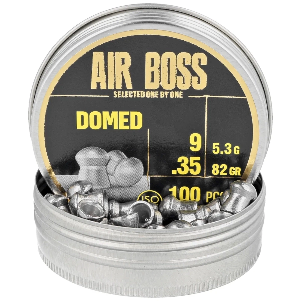 - AirBoss Domed .35 ciężki, selekcjonowany sztuka po sztuce śrut w kal. 9 mm. Amunicja klasy Premium firmy Apolo w doskonałej cenie! Do strzelań na dużych dystansach. Obły profil zapewnia potężną siłę obalającą. Gładki kielich bez moletowania. Op. 100 szt.