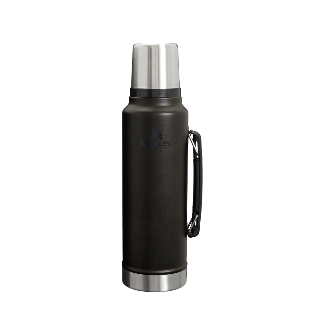 - Stalowy termos Stanley Legendary Classic z poręczną, składaną rączką 1,4L z linii kolorystycznej Black 2.0