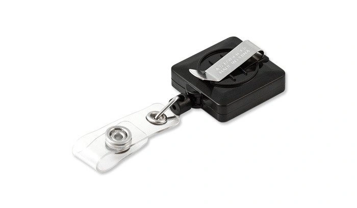 Retraktor zakończony jest winylowym zaczepem, który idealnie sprawdza się do przypinania plakietek identyfikacyjnych, kart dostępu czy lekkich breloków.