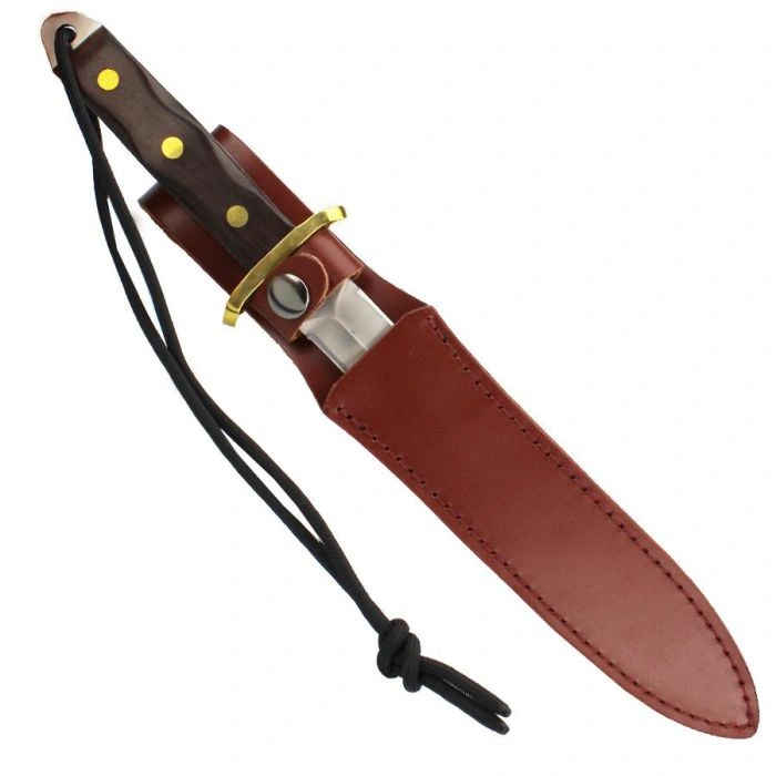 Rękojeść full tang z drewna – mocna konstrukcja pozwala używać noża także jako narzędzia uderzającego; wyposażona w praktyczny otwór na smycz.