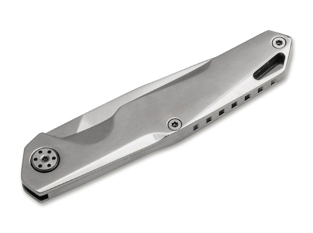 Polerowane ostrze wykonane ze stali nierdzewnej 8Cr13MoV posiada praktyczne nacięcie na paznokieć, ułatwiające szybkie otwieranie. Rękojeść również wykonano z polerowanej stali nierdzewnej, co nadaje nożowi spójny, elegancki wygląd.