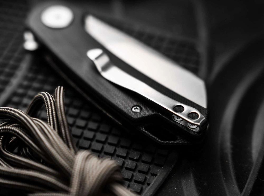 Ergonomiczne okładziny rękojeści z czarnego G10 gwarantują stabilny, pewny chwyt nawet w trudnych warunkach. Antypoślizgowe karbowanie na grzbiecie ostrza dodatkowo zwiększa kontrolę podczas pracy precyzyjnej.