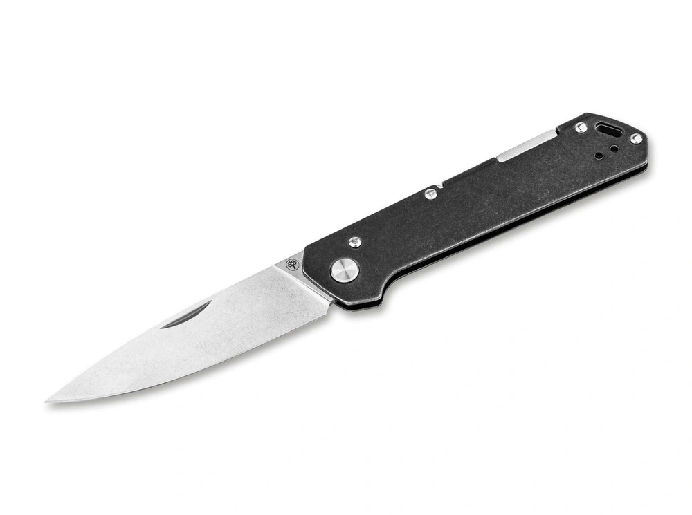 Koncepcja obsługi z kołkiem na zatrzask i blokadą backlock do otwierania i odblokowywania ostrza jest obsługiwane; kultowy czarny uchwyt ze stali stonewashed, składany z jednego kawałka. Dostępny z otworem na smycz, wymienny klipsem tip-up i duży użytek.