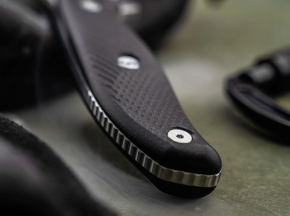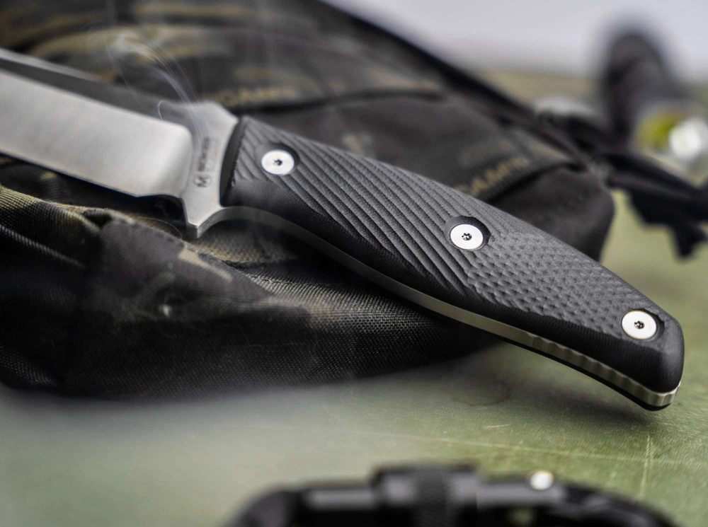 Nóż wykonano w konstrukcji full tang, co zapewnia maksymalną wytrzymałość i doskonałe wyważenie. Przykręcane okładziny rękojeści z G10 są ergonomiczne, teksturowane i inspirowane klasycznymi nożami składanymi Texas Toothpick, nadając całości ponadczasowego wyglądu.