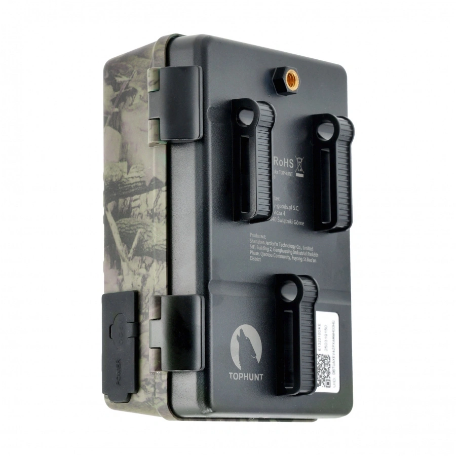 Fotopułapka TOPHUNT H6 działa w temperaturach od -20°C do 70°C i dzięki klasie IP66 bez problemu radzi sobie w trudnych warunkach atmosferycznych. Zasilanie z akumulatorów oraz panelu solarnego zapewnia ciągłość pracy bez konieczności częstego ładowania.