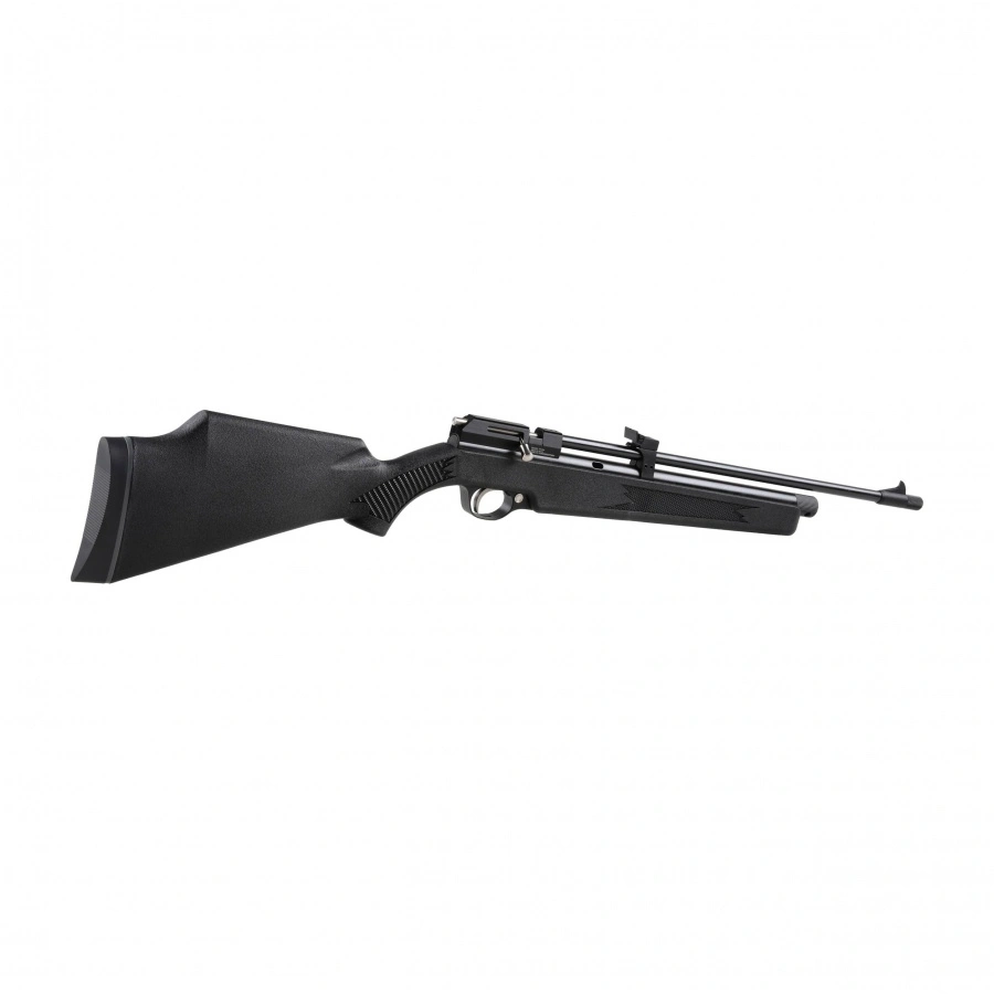 Zasilanie kapsułami CO₂ 12 g eliminuje odrzut, co znacząco zwiększa komfort i celność strzelania. Karabinek wyposażono w: