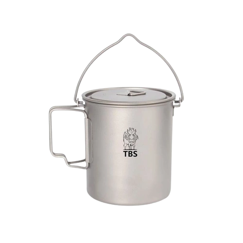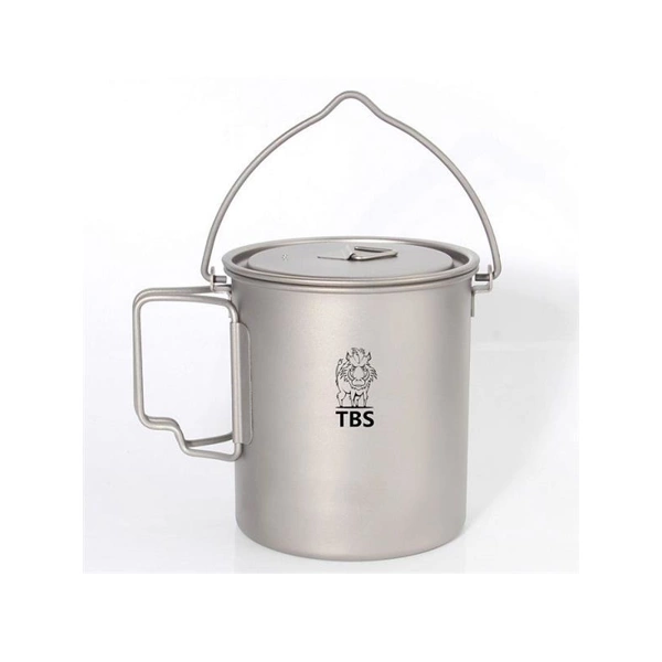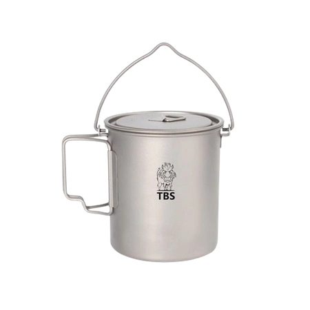 Ultralekki, niezwykle wytrzymały, odporny na korozję tytanowy kubek - garnuszek z pokrywką i kabłąkowym uchwytem wyprodukowany przez brytyjską firmę TBS Outdoor.