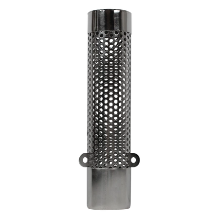 Sparkarrestor jest zbudowany z ażurowej blachy z oczkami o średnicy 5mm. Łapacz posiada również 3 otwory montażowe po bokach, dzięki czemu można używać lin aby utrzymać stabilność rury w ekstremalnych warunkach pogodowych.