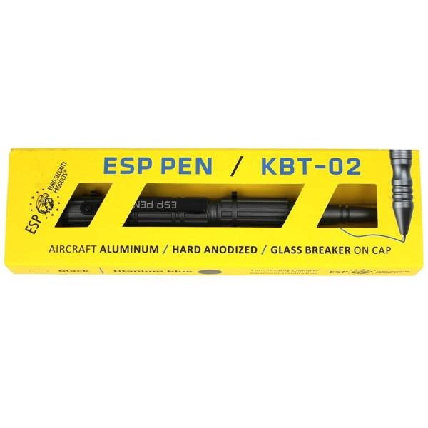 KBT-02-T, wykonany z wytrzymałego aluminium lotniczego, lekki długopis taktyczny firmy ESP w kolorze tytanu ze skuwką. Długopis poza funkcją do pisania zaprojektowano jako narzędzie do samoobrony. Długopisy taktyczne są jedynymi narzędziami do obrony jakie nie podlegają ograniczeniom dotyczącym wnoszenia niebezpiecznych przedmiotów na pokład samolotów.