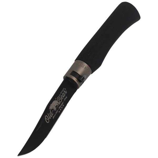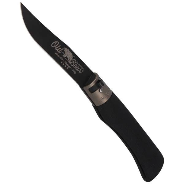 Old Bear Large Total Black, Brass Collar lekki nóż składany o prostych ergonomicznych liniach z charakterystycznie blokowanym ostrzem. Ekskluzywny włoski odpowiednik noża typu Opinel. Dostępny w pięciu rozmiarach: XS (15.0 cm - 7 ⅚"), S (17.0 cm - 6 ¾"), M (19.0 cm - 7 ½"), L (21.0 cm - 8¼") oraz XL (23.0 cm - 9"). Idealny wybór dla miłośników klasycznego designu.
